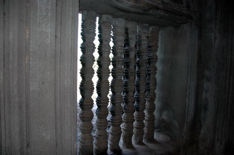 ![]() 本殿には3重の回廊が巡らされています これは第一回廊の連子窓、石で作られた見事な彫刻です。 |