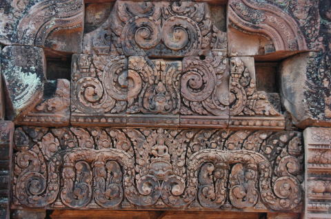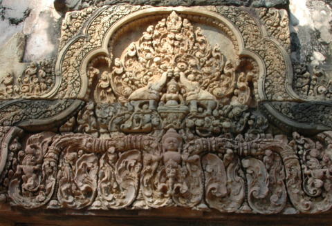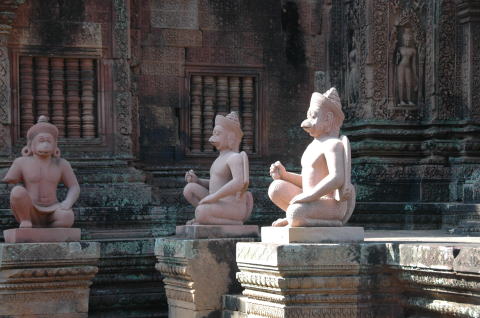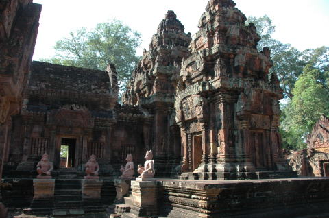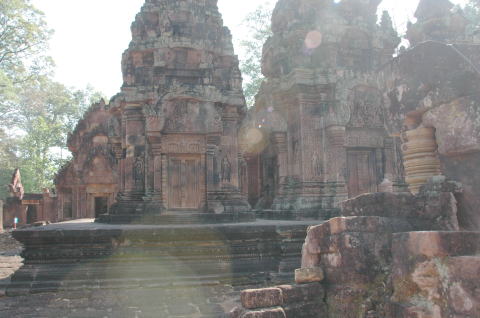 バンテアイ・スレイ 女の砦の意味を持つヒンドゥー教寺院 シェムリアップから約35km トウクトウクで少し疲れました。 たくさんの彫刻が見事でした。特にデパター像は東洋のモナリザと言われている。 |