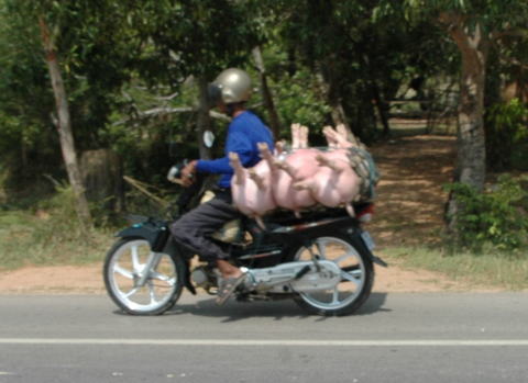 ![]() 豚までバイクで運んでいるのにはびっくり |