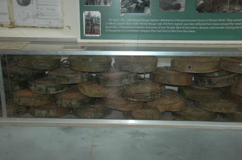 地雷博物館にて ポル・ポト政権との内戦時?に各地に埋められた地雷の撤去をボランティアで行っているアキーラー氏 彼が個人で建てたちっちゃな博物館 |