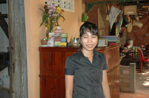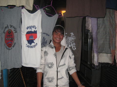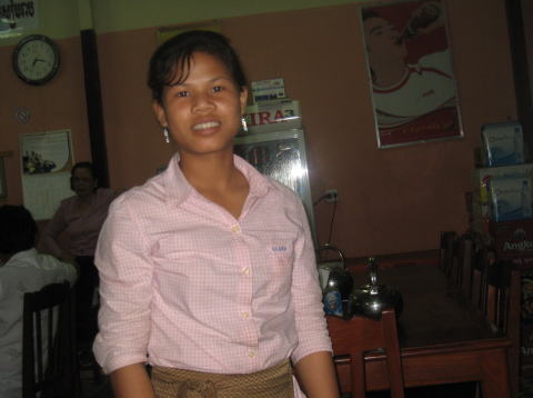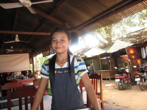 | 真冬の長野県を出発して、カンボジアに入ったら最低気温が20℃、最高気温が33℃ 最初の日はTシャツで見学をしていたら 腕が日に焼けてヒリヒリしてきたので次の日から長袖にした。毎日暑くて汗だくだく(私は汗かきなので余計に大変でした) 一日に500ccのペットボトルの水を2本ずつ飲んだ。2,000リエラ/1本 (2本で1ドル) 食事は小さな食堂でカンボジア料理をと考えたが、料理の名前がわからなくて、英語のメニューもあったが英語力不足で (egg-plantって何だっけと考え込んで注文してから思い出したり) 思うように食べれませんでした。 またにおいが強く、最初のうちは気にならなかったが、4日目にはちょっとにおいが鼻についてきました。 カンボジアは貧しくて学校に行っていない子ども達が多いように感じました。裸足の子どもも多かったです。 |
