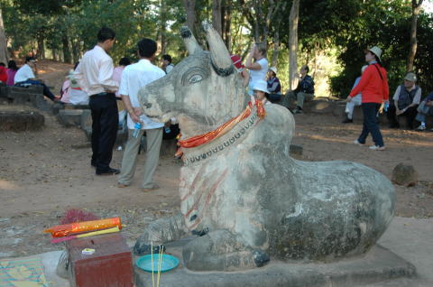 ![]() プノンバケン寺院の入り口にある牛の像 |