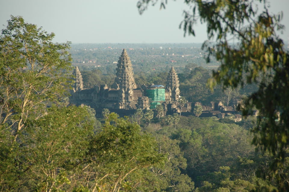 ![]() 樹の間からアンコールワットが見えます |