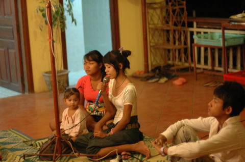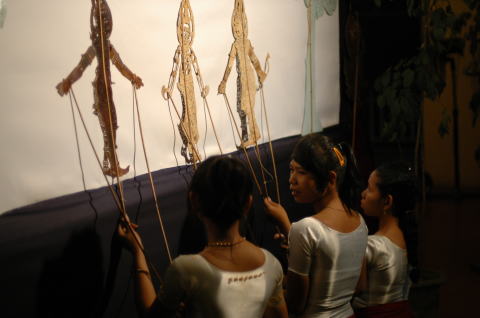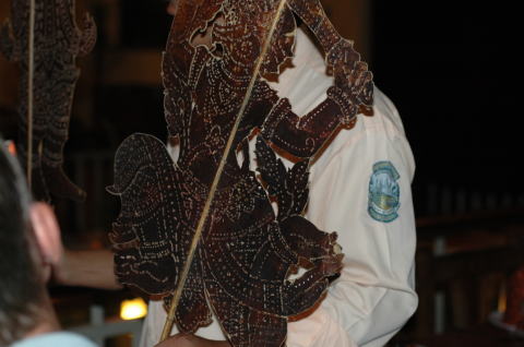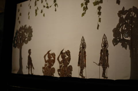 スバエク・トーイ(影絵芝居) 三日目の夜は影絵芝居を見ながらの食事です。 カンボジアの言葉がわからず意味がわからなくて・・・ |