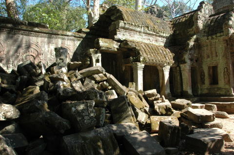 タ・プローム この寺院は修復の手をあまり加えずあれた状態のまま残してある |