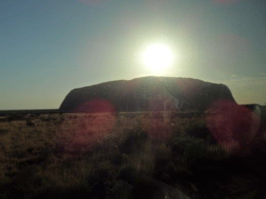 ![]() ウルルの夕日鑑賞へ 夕日の沈む前のウルルが美しい |