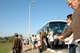 バスの列はエドフで見学時間を取ってくれる。そのあとまた列を作ってコムオンボまでそこでも神殿見学、そしてアスワンへお昼頃到着