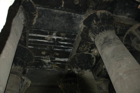 | 神殿の内部の天井が天井が黒くなっている。キリスト教の時代ここを台所として使っていたそうだ。 | ![]() |