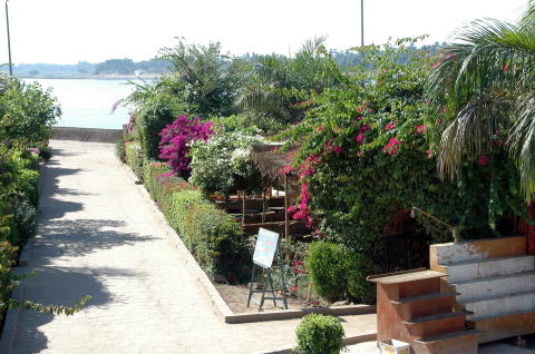 | アスワン アスワンのレストランで昼食をとった後、ホテルに入り休憩して、その後ファルーカに乗ってセイリングを楽しむ。 私たちの乗ったファルーカは大きなファルーカで28人が乗ってもまだ余裕があった。 |
