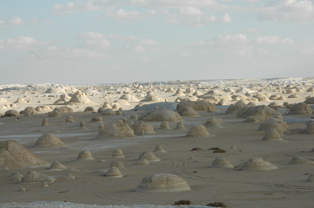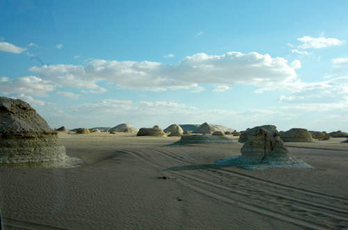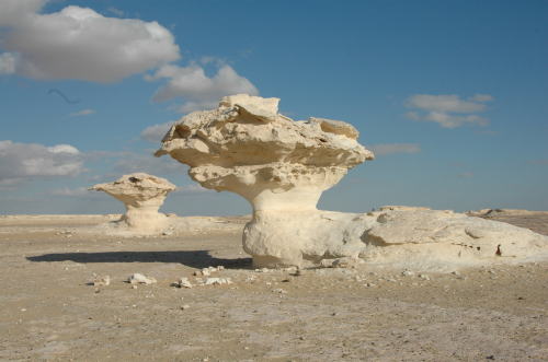 白砂漠石灰岩が風で浸食され、見事な造形美である。 |