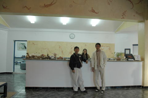 | バフレイヤオアシスのホテルにて カイロから砂漠の中を約三時間、バフレイヤオアシスに到着、ホテルの主人はドイツの方、奥様は日本人。7年前に結婚されたそうです。 |