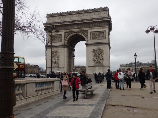 | 1月9日( 木) オプショナルコース (オペラ座見学後、昼食) その後自由行動 オペラ座ーシャンゼリゼ通りー凱旋門まで往復 上の図の青いコース その後地下鉄でホテルまで 1月10日(金) オプショナルコース(サント・シャペル教会見学と昼食) オペラ座前で集結してバスで空港へ パリ発 19:00 JAL46便 1月11日(土) 羽田空港着 14:50 新宿発 16:45 自宅着 21:00 |