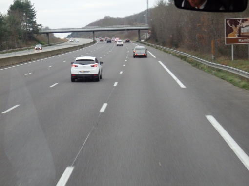 ![]() 道路は片側3車線時速100kmほどで走っている |