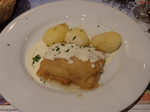 ![]() メインの魚料理 パンは自由に食べられる。 |