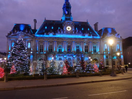 ![]() トゥール市街に入りレストランの前の市庁舎? イルミネーションがきれいだった |