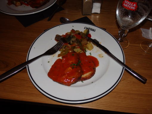 ![]() 主菜はポーク 期待していたが、少し固かった |