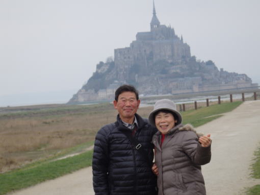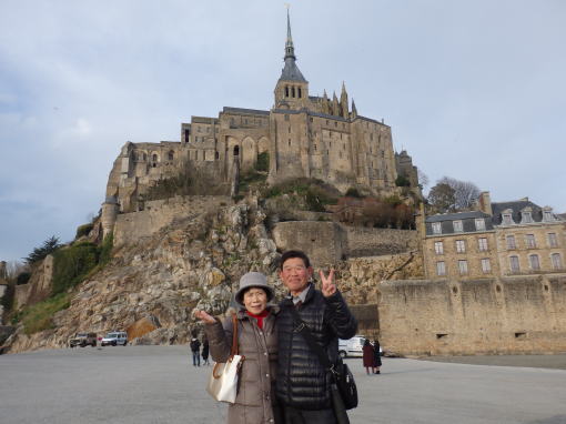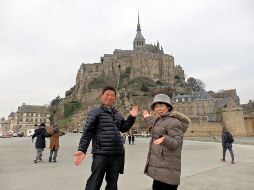 ![]() 見学の終わったモンサンミッシェルをバックに |