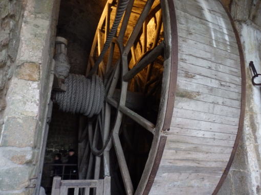 ![]() かってモンサンミッシェルが監獄として使われていたとき 食料などを運搬するために、この中に囚人が入って 車輪を回してひもにつけられた荷物を引き揚げたそうだ |