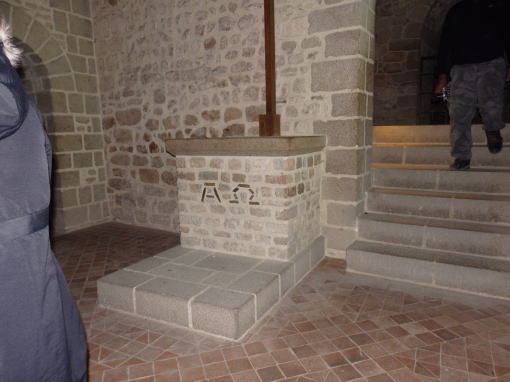 ![]() 祭壇に刻まれたAとΩ 古代ギリシャ語の最初の文字と最後の文字 生と死 を意味しているとか |