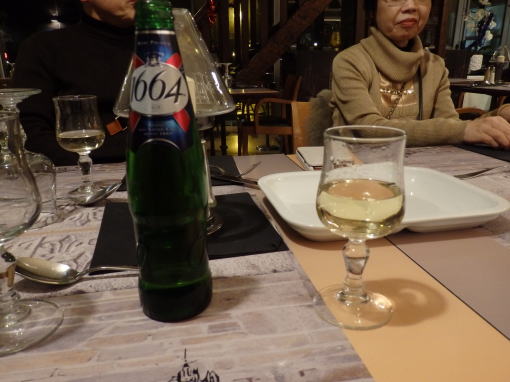 ![]() モンサンミッシェルの近くのホテルのレストランで夕食 ビールとワイン |