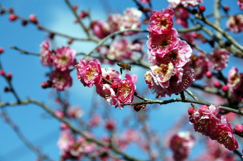 | 3月15日梅の花にミツバチが来ていました | ||