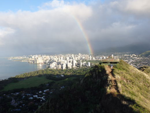 ![]() 1月6日(土) 朝ダイヤモンドヘッドに登り始めると 見事な虹が |