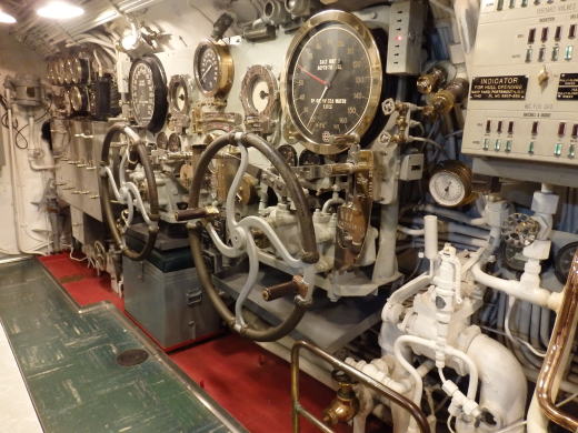 ![]() 潜水艦の内部に入るとたくさんの計器 そして操作ハンドル |