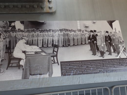 ![]() 1945年9月2日 東京湾状に停泊していたこの戦艦ミズーリ の甲板上で降伏文書調印式が行われた |