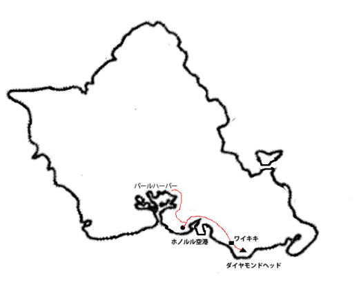 | 1月5日(金) ハワイ島より 飛行機で12:00着 タクシーにてワイキキのホテルへ 散歩と買い物 1月6日(土) 市バスで 6:30発 ダイヤモンドヘッドへトレッキング 9:30 ワイキキに戻り 市バスでパールハーバーへ アリゾナ記念館 潜水艦 バウフィン号博物館 戦艦ミズーリ記念館 バスでホテルへ 1月7日(日) ワイキキ海岸を散歩後 タクシーで空港へ ホノルル発 12:10 途中で日付変更線を越え 1月8日(月) セントレア着 17:00 |