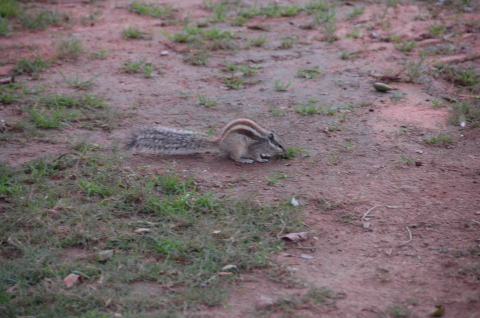 ![]() 庭にはシマリスが観光客に無頓着でえさを探している |