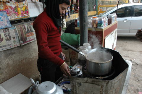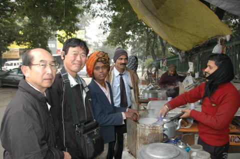 ![]() インドの飲み物といえばチャーイ 紅茶の一種 茶葉が違うが味は似ている 茶葉を入れ沸騰させ、ミルクと刻んだショウガ、砂糖を入れ沸騰 最後に金網で濾す。一杯5ルピー(10円) 寒い中でとてもおいしかった。 |