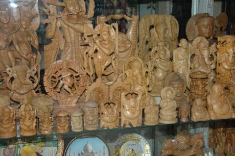 ![]() インドのお土産としてよく売られている木彫 |
