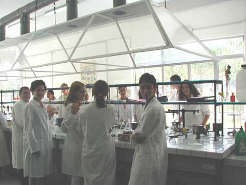![]() 1年生の化学実験のようす |