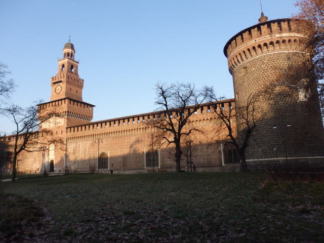 ![]() スフォルツェスコ城正面 坂ちゃんと一緒に |