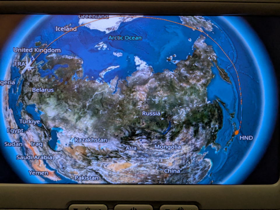 ![]() ドイツのフランクフルトへ向かう。なんと14時間30分のフライト 以前は10時間くらいでいけたのに ロシアがウクライナと戦争をしてるので ロシアの上空が通れない 北極圏の上空経由です。 |