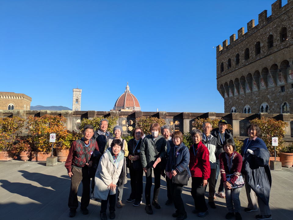 ![]() ウフィツィ美術館の中庭での記念撮影 |