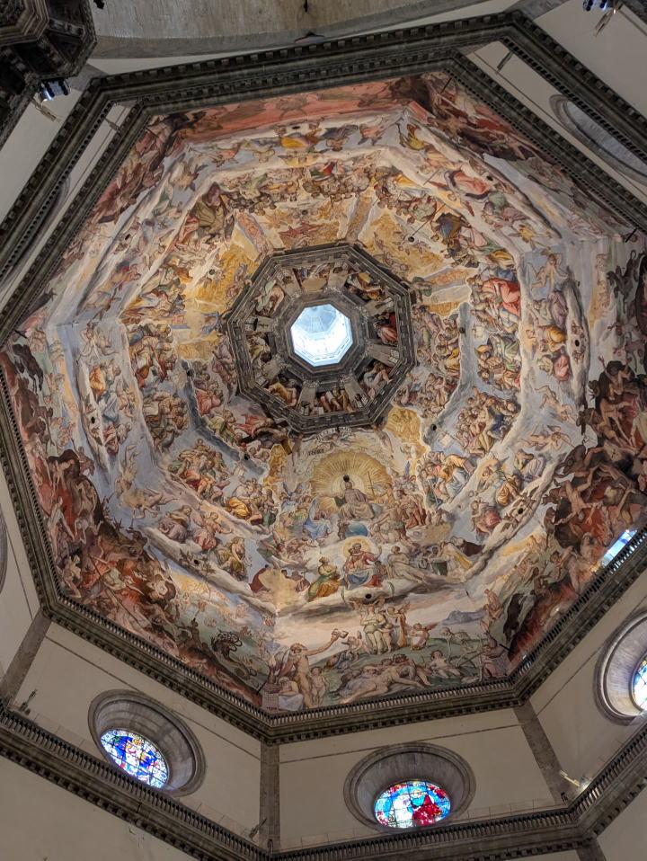 ![]() 八角形の天井に描かれた「最後の審判」のフレスコ画 |