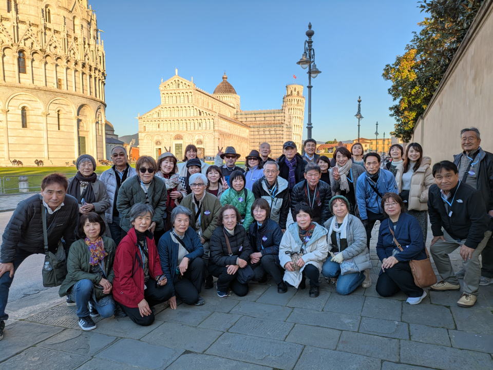 ![]() ピサの斜塔前で記念に1枚 |