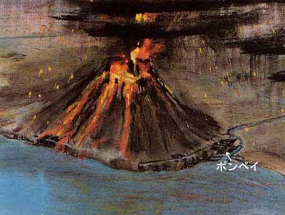 | 中学校時代「ポンペイ最後の日」という小説を読み火山の恐ろしさを感じると同時に行ってみたいと思ったものの、その国がイタリアであると知ったとき、そんな遠い国では行く機会もないのではと、当時は思っていた。 今回のイタリア旅行の機会ができたとき是非行ってみたいと思い計画に入れました。 さてポンペイは長靴のようなイタリア半島の南の方にあります。「サンタルチア」という歌で有名なナポリという町の近くにあります。 紀元前800年頃(日本では縄文時代になります)町が作られました。ポンペイはイタリア北部と南の海を結ぶ中継地点で、貿易で栄えるようになります。紀元前525年にはギリシアに支配され、紀元前310年に今度はローマに支配されます。 しかし地中海と結ぶ貿易港として農業(ワイン・オリーブ油)、漁業、商業が盛んでした。 紀元前62年大地震が起き多くの家々はつぶれてしまいます。しかし復興も早く以前にまして栄えるようになります。(日本ではようやく弥生時代に入った頃です) 紀元79年8月24日正午過ぎ近くのベスビオ火山が突如火を噴きます。 天高く燃え上がる火柱巨大な火山灰のキノコ雲たちまち太陽は覆い隠され暗闇となったそうです。(当時の近くの住人プリニオという住人がくわしく書き残してあったそうです) |