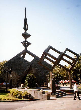 | 6.228和平公園 (アールアールパーフーピンコンユェン) 中国大陸からからきた国民党の人たち(外省人)が政治の中枢を握り、もとから台湾にいる人たち(本省人)を国語(北京語)もできない二等国民として蔑視し、搾取したため、1947年2月28日、民衆が蜂起した。(2・28事件) 台湾に駐屯していた国民党政府軍の力では鎮圧できず、大陸から増援を得て鎮圧したものの、全島において 28,000人が虐殺されたとそうです。 今年総統に選ばれた陳水扁さんが台北市長の時に作ったそうです。 |