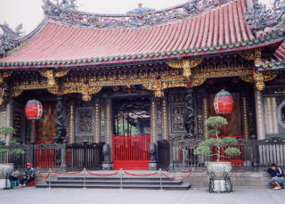 | 2.龍山寺 龍山寺は今から260年前に作られた、台湾で最も古いお寺です。人がいっぱいで、熱心にお参りしている姿に驚かされました。 またお寺の境内には道教の媽祖をお祭りしてありました。 台湾の宗教は仏教 486万人、道教 364万人、キリスト教 72万人、その他 180万人ということで道教が多いのにも驚かされました。 |