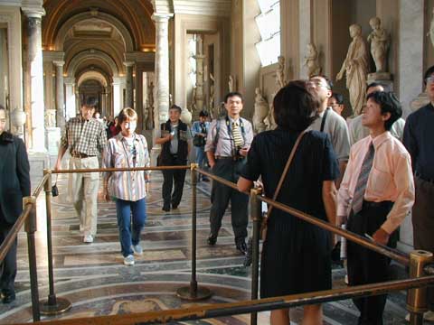 | バチカン博物館に入り、階段を上って上の階に出る。燭台のギャラリー、タペストリーのギャラリーを通る。 古代ギリシャ美術に圧倒される。 |