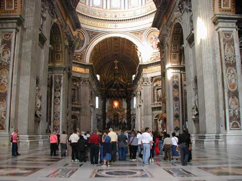 | 中央祭壇をのぞむ キリスト教の総本山、多くの人たちが訪れていた。 建物の大きさ、荘厳さにキリスト教の力の大きさを感じた。 |