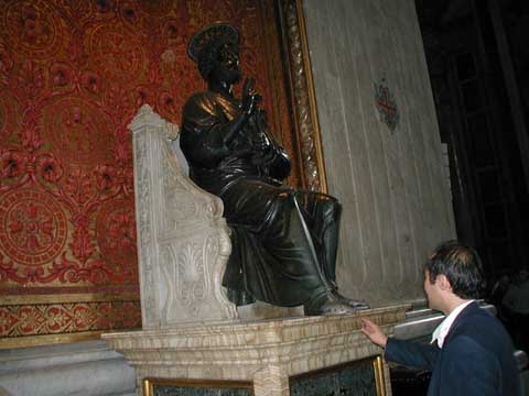 | この大聖堂の建てられたのは聖ペトロの墓の上、その聖ペテロの像は敬虔なキリスト教徒の接吻によって足の指はすり減っていた。 | |
