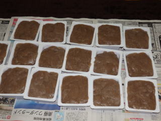 | 8.これを豆腐の入っていたプラスチックの容器に入れて形を整えます。 |