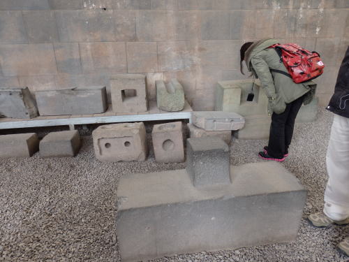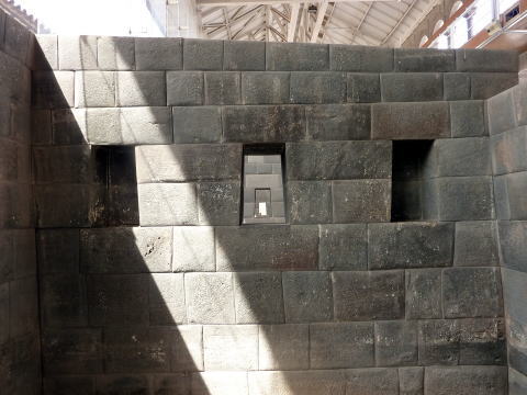 ![]() 太陽の神殿の石組みはカミソリの刃さえ入らない緻密な石組みで 壁には台形の穴が残っている。 この穴には黄金でできた神の像が祀ってあったという |