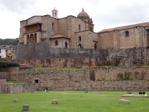 ![]() クスコの中心部サグラド庭園から見た コリカンチャ=太陽の神殿 現在はサント・ドミンゴ教会となっている |