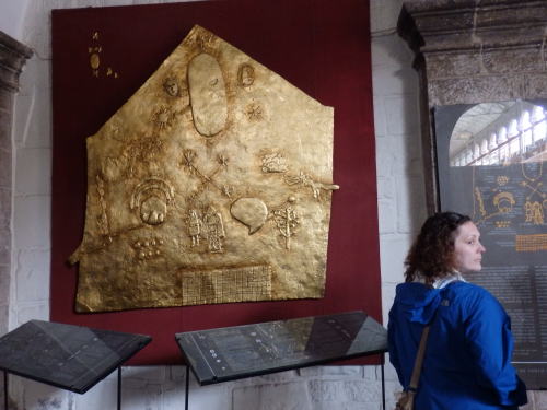 ![]() インカの世界観を表す金の板(レプリカ) 神殿の部屋に入ると インカの世界観を表す金の板がありました。 インカの世界観では 世界は三層に分かれています。 コンドルが守る天上の世界、ピューマが守る地上の世界、 蛇が守る地下の世界です。 |