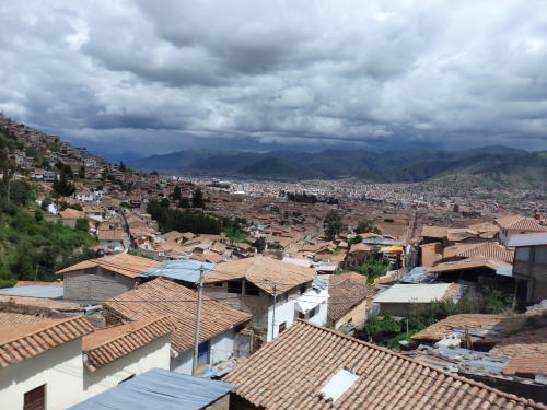 ![]() クスコの中心地からサクサイワマン遺跡に向かう。 途中でクスコの市街を振り返る。 |