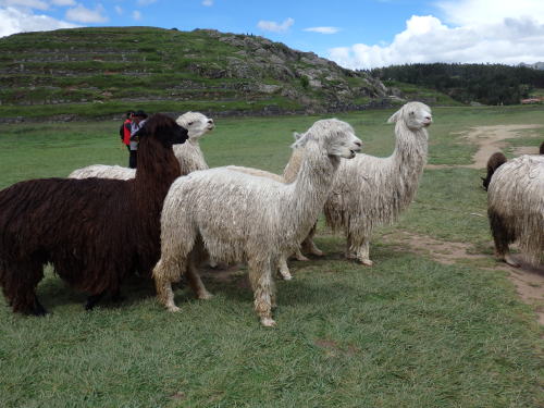![]() アルパカ この遺跡には草が多いせいかアルパカが多くいた アルパカはラクダ科だが羊毛に似た良質な毛 をとりセーターなどの衣類になる。 |